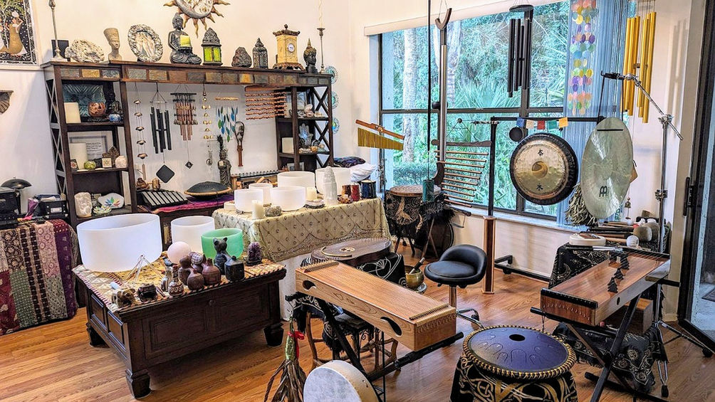 To provide the most effective learning experience, in-person training dates are scheduled individually. Our small class sizes ensure personalized attention, allowing you to tailor your sound healing practice to your specific goals, whether personal or professional. You'll benefit from extensive hands-on practice with over 75 world sound healing instruments, including the profound vibroacoustic sound bed, gaining practical skills and confidence. You'll also receive a fully customized sound bath, created with your favorite instruments, enabling you to immediately offer professional sound healing sessions. Contact me to discuss scheduling your personalized training. 772-245-6515
